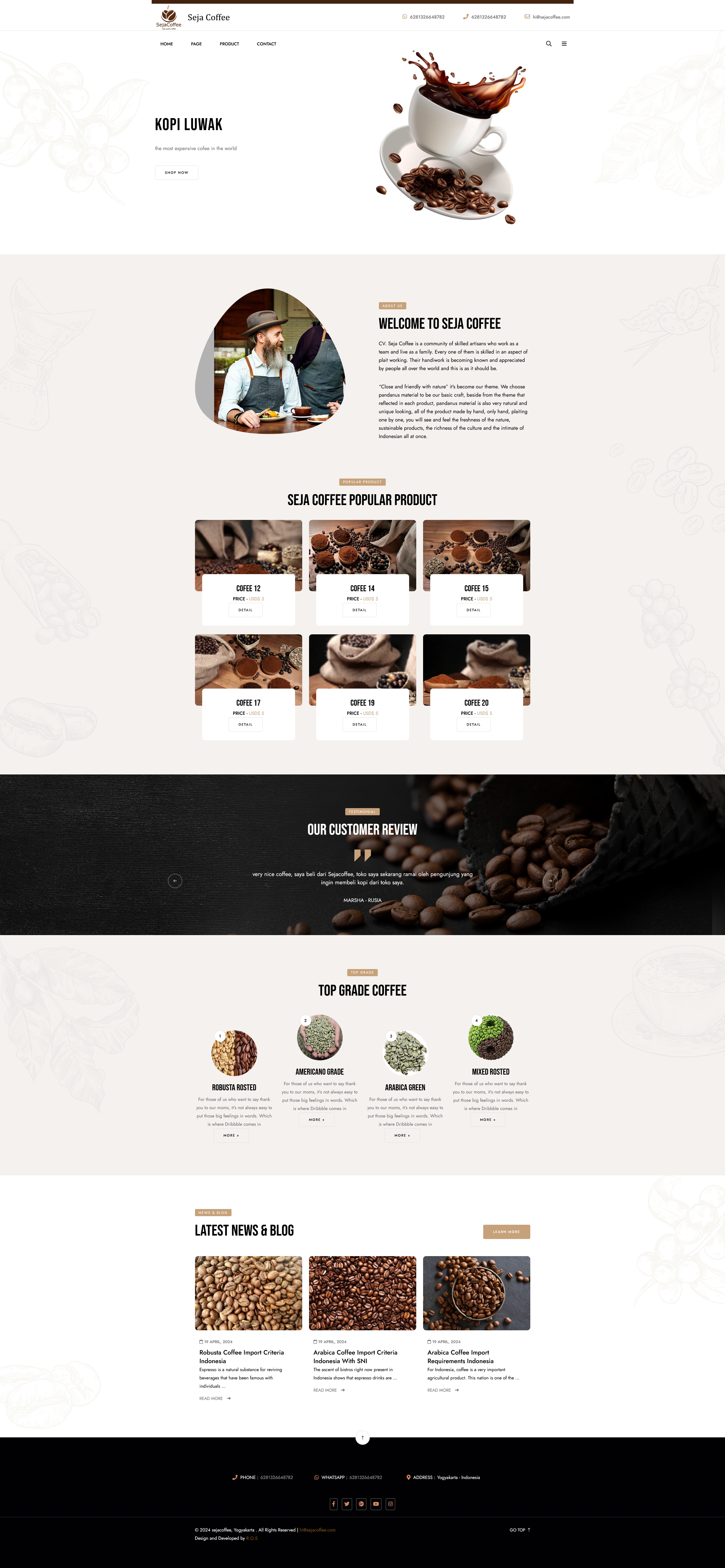 | Info | : | CV. Seja Coffee is a community of skilled artisans who work as a team and live as a family. Every one of them is skilled in an aspect of plait working. Their handiwork is becoming known and appreciated by people all over the world and this is as it should be. |